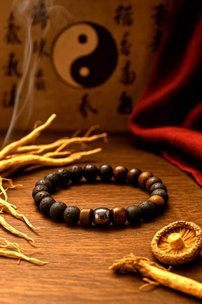 Ce bracelet Yogi associe les propriétés naturellement poreuses de la pierre de lave volcanique à la chaleur apaisante du bois naturel, pour accompagner votre bien-être énergétique selon les principes de la Médecine Traditionnelle Chinoise (MTC).