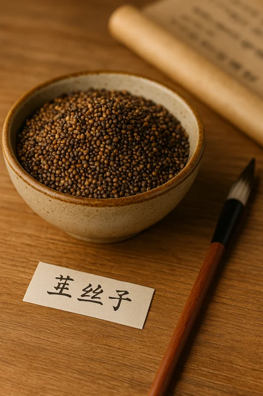 Le Tu Si Zi (菟丝子) désigne les graines de Cuscute, une plante grimpante aux fines tiges dorées, originaire des régions tropicales et subtropicales d’Asie.