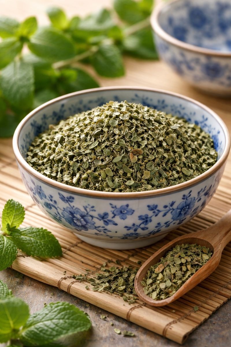 Quantité : 1 à 2 cuillères à café de feuilles de menthe verte coupées